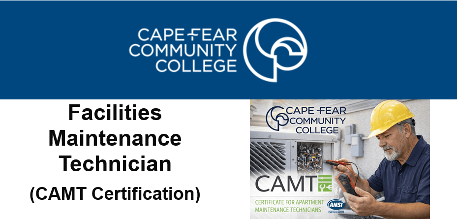 Certification Information This program is designed to meet the training requirement for the Certificate for Apartment Maintenance Technicians (CAMT), an industry-recognized credential accredited through ANSI. (Certification eligibility and testing requirements are determined by the credentialing organization and are subject to change.) |